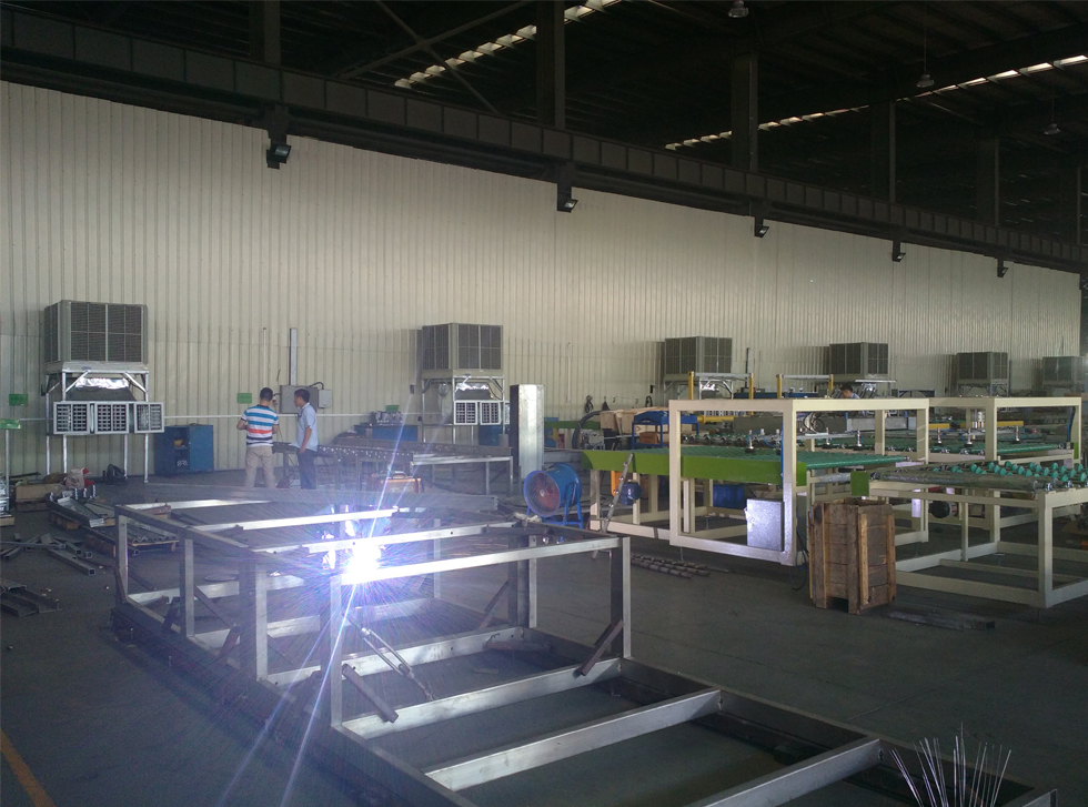 3、環(huán)保空調(diào)降溫迅速,采用大風(fēng)量低噪音風(fēng)葉,每臺(tái)機(jī)送風(fēng)量大約18000m3/h,可迅速的排出車間內(nèi)的熱空氣,降低車間內(nèi)的溫度